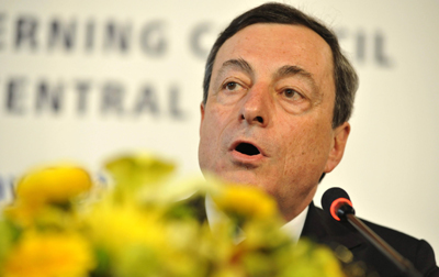 圖為德拉吉在新聞發(fā)布會上。