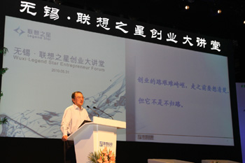 聯想控股公司董事長柳傳志在“無錫·聯想之星創業大講堂”上演講。資料照片 |
