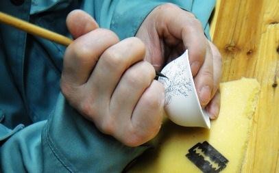 青花繪畫裝飾是一項精細且富于藝術創造性的工作,對瓷工的技能有著很高的要求。傳統的青花瓷繪技藝分為畫面設計、過稿、勾線、分水等幾個步驟。