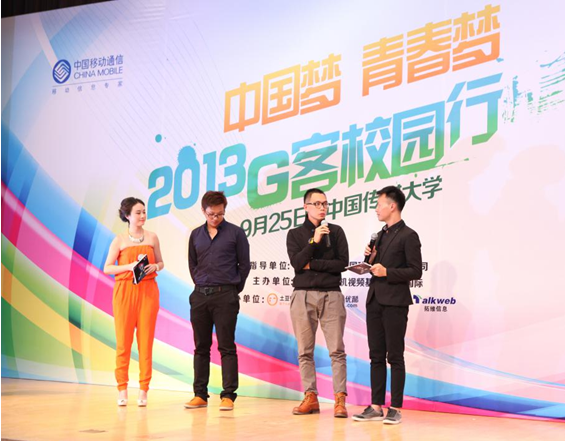9月25日,“中國夢 青春夢——2013G客G拍原創視頻大賽”北京站校園活動,在中國傳媒大學正式啟動,這也是本年度G客G拍原創視頻大賽的重點活動之一。中國移動2013G客G拍原創視頻大賽分為六大板塊:作品征集、G客G拍校園行、新媒體展映、手機院線發行、作品評選、G客盛典。截止到11月15日之前,感興趣的觀眾均可以通過互聯網(大賽官網www.gkgp.com)或新浪微博(官微:G客G拍)上傳作品,參與比賽。