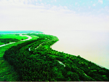 自明萬歷八年(公元1580年)起,洪澤湖大堤的迎水坡開始增筑直立式條石墻護面,時稱“石工墻”,歷經明清兩代171年形成規模。“石工墻”用千斤重的條石及糯米石灰漿砌筑,共用條石6萬多塊,規格統一,筑工精細,充分展示了我國古代水利建設的高超技藝。現如今,洪澤湖大堤已被納入江蘇省申報世界文化遺產的推薦名單之中。大堤兩側遍植樹木,宛如游移欲飛的巨龍依水而臥。人行其中,倍覺“浩渺云煙籠細浪,空蒙雨色入重淵”。