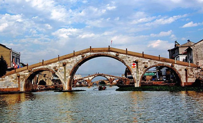 在雙林古鎮區中,以“三橋”為代表的橋文化景觀具有較高的歷史價值和文化品位。據《東西林匯考》記載,雙林古鎮歷史上曾有橋125座,其中始建于宋代4座,元代1座,明代13座,清代35座。雖經滄桑變遷,大部分已廢圯湮沒,但至今仍不失為“江南古橋留存集中區”(《中華文物古跡旅游·古代橋梁》之語),僅鎮區尚有21座之多。其中鎮北的萬元、化成、萬魁三橋始建于明代以前,均為市級文保單位。橋長50米左右,且空間水平相距不到360米,為江南僅有。
