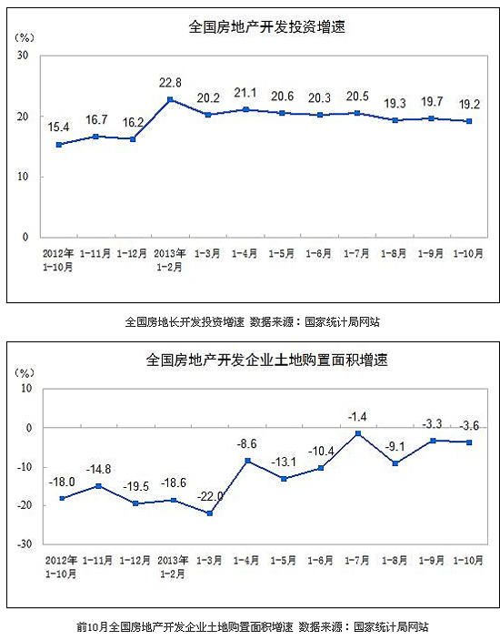 2013年1-10月份,全國房地產(chǎn)開發(fā)投資68693億元,同比增長19.2%,增速比1-9月份回落0.5個百分點(diǎn)。其中,住宅投資47222億元,增長18.9%,增速回落0.6個百分點(diǎn),占房地產(chǎn)開發(fā)投資的比重為68.7%