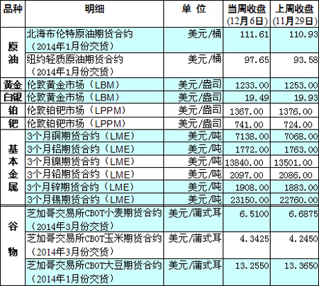 國際大宗商品期貨價格明細(xì)表[2013-12-9]