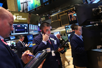 在美聯儲縮減量化寬松規模(QE)靴子落地后,美股18日卻大幅上漲,道指和標普指數收盤雙雙創下歷史新高。圖為美國證交所內交易員進行交易。