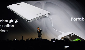 中國華為公司在2014拉斯韋加斯國際消費電子展(CES)一場針對媒體的發布會上推出其2014款新型智能手機。記者 方喆