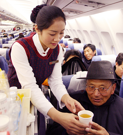 為促進西藏民航事業(yè)發(fā)展,國航成立了自治區(qū)首家基地航空運輸企業(yè)—國航西藏分公司,招收了中國民航首批藏族女乘務(wù)員和藏族大學(xué)本科飛行員,在拉薩機場啟用了全球行李查詢系統(tǒng)。目前,國航每周進出西藏的航班超過140班,年旅客運輸量達(dá)97.6萬人次,其中成都—拉薩航線從開航當(dāng)年的4000人增至45.35萬人次。
