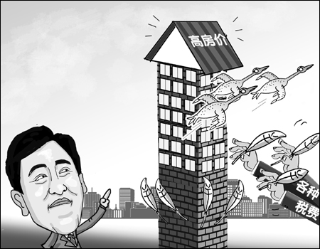 全國政協委員、恒大集團董事局主席許家印說,房價的24%是稅費,超過30%是土地出讓,這些錢都被政府賺走了。“要降房價,首先請政府不要‘雁過拔毛’”。許家印指出,目前房價的構成主要有五部分:地價、綜合造價、政府規費、稅收和企業利潤。