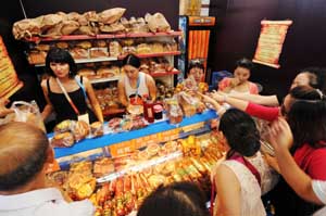 6月29日到7月4日在哈爾濱舉辦的首屆中俄博覽會上,俄羅斯面包受到歡迎。記者 王建威/攝 |
