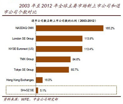 公開資料顯示,自2001年水仙電器、廣東金曼2家公司股票被終止上市交易至今,滬深交易所累計僅有78家公司退市,僅占目前上市公司總數目(2545家)的3%,年均退市僅有3家。相比之下,2003年至2007年,紐約證券交易所年均退市率達6%,納斯達克年均退市率則為8%。