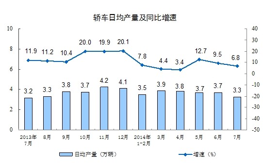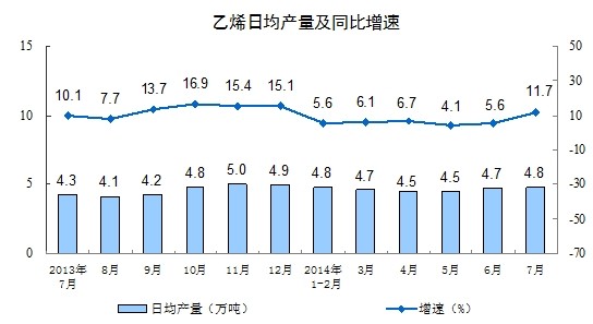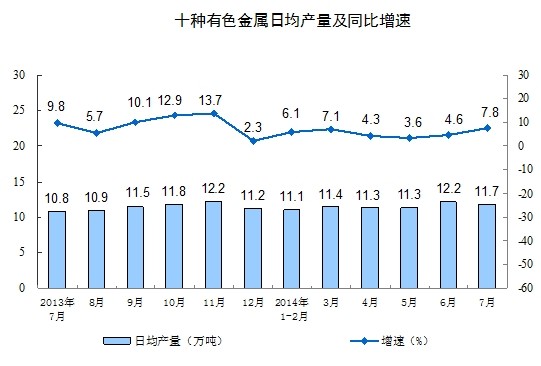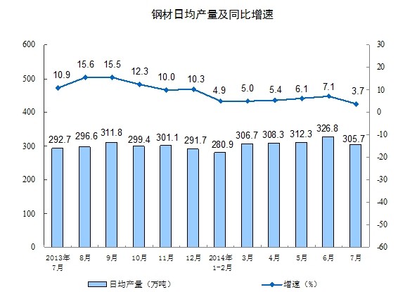 分產品看,7月份,多種產品同比增長。其中,鋼材9476萬噸,增長3.7%;水泥22297萬噸,增長3.5%;十種有色金屬363萬噸,增長7.8%;乙烯150萬噸,增長11.7%;汽車185.8萬輛,增長10.5%;轎車102.1萬輛,增長6.8%;發電量5048億千瓦時,增長3.3%;原油加工量4108萬噸,增長2.0%。