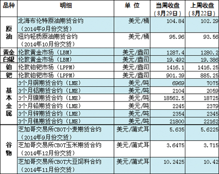 國(guó)際大宗商品期貨價(jià)格明細(xì)表[2014-9-1]
