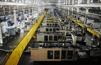 在廣東珠海格力電器的廠房?jī)?nèi),自動(dòng)化設(shè)備的使用使該區(qū)域幾乎不需要人工操作。