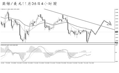 英鎊兌美元探底后強(qiáng)力反彈上行。從日線圖上看,匯價(jià)距離均線系統(tǒng)的壓制位仍然較遠(yuǎn),英鎊想要結(jié)束中線的下跌趨勢(shì)有一定難度。4小時(shí)圖震蕩市特征明顯,匯價(jià)強(qiáng)力下行挑戰(zhàn)1.5870一線的支撐,小幅刺破之后迅速反彈。上方下降趨勢(shì)線的阻力位在1.6080,英鎊升破此線之前,將繼續(xù)保持下跌的走勢(shì)。