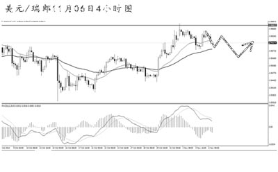 美元兌瑞郎沖高后保持震蕩節(jié)奏。日線圖均線系統(tǒng)多頭排列,前方高點(diǎn)阻力0.9680并沒有被有效升破。從4小時(shí)圖上看,空頭動(dòng)能已有所展現(xiàn),首先關(guān)注0.9540一線的道氏點(diǎn)支撐,匯價(jià)若跌破此位置,將展開更為明顯的下跌。短線匯價(jià)面臨下調(diào)風(fēng)險(xiǎn),但預(yù)計(jì)后市仍將以走高為主,繼續(xù)向0.9700上方發(fā)起沖擊。