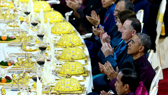 11月10日,國家主席習近平和夫人彭麗媛在北京為出席亞太經合組織第二十二次領導人非正式會議的各經濟體領導人及配偶舉行歡迎晚宴。這是晚宴現場。 新華社記者 龐興雷/攝