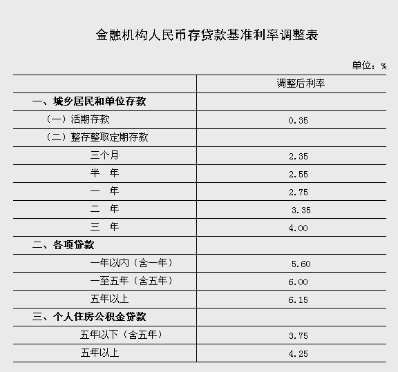 中國人民銀行決定,自2014年11月22日起下調金融機構人民幣貸款和存款基準利率。金融機構一年期貸款基準利率下調0.4個百分點至5.6%;一年期存款基準利率下調0.25個百分點至2.75%,同時結合推進利率市場化改革,將金融機構存款利率浮動區間的上限由存款基準利率的1.1倍調整為1.2倍;其他各檔次貸款和存款基準利率相應調整,并對基準利率期限檔次作適當簡并。