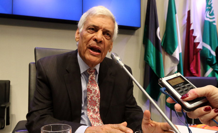 石油輸出國組織部長級會議27日在維也納歐佩克總部舉行,主題是討論過去幾個月不斷下跌的油價走勢和2015年石油市場前景。據外媒報道,會議沒有就減產達成一致,成員國將密切關注市場,并于明年6月再次進行會談。過去幾個月來,國際市場原油價格已經下跌近30%。本次歐佩克部長級會議會否做出限產保價決定受到關注。 圖為11月27日在奧地利維也納,石油輸出國組織(歐佩克)秘書長巴德里向記者講話。