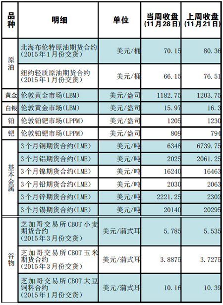 國際大宗商品期貨價格明細表[2014-12-1]