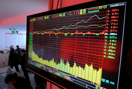 12月2日,滬深兩市低開高走,滬指在券商、銀行、保險等權重板塊帶動下暴漲83.39點,滬指創出2013年9月9日以來單日最大漲幅。截至收盤,滬指報2763.55點,漲83.39點,漲幅3.11%,深成指報9366.95點,漲271.19點,漲幅2.98%。其中,券商股幾乎全線漲停,方正證券、國元證券等9股漲停。 圖為,在河南洛陽一家證券營業廳內拍攝的當日滬指漲幅K線圖。