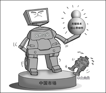 目前國內(nèi)機(jī)器人本體公司中只有廣州數(shù)控、南京埃斯頓、沈陽新松機(jī)器人等少數(shù)公司在進(jìn)行控制系統(tǒng)、驅(qū)動和伺服電機(jī)等核心零部件自主研發(fā)。不少國內(nèi)企業(yè)只是購買進(jìn)口零部件后集成組裝機(jī)器人,缺乏核心技術(shù)。業(yè)內(nèi)人士擔(dān)憂,長此以往,“核心零部件之短”將致本土企業(yè)生存空間被擠壓,“國退洋進(jìn)”風(fēng)險放大。