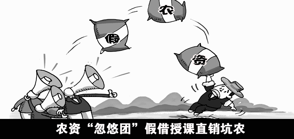 行騙者是一種名為“忽悠團”的群體。《經濟參考報》記者在河南多個縣鄉追蹤采訪發現,近年來,河南一些地方先后發生假農資“直銷坑農”騙局:相關人員和中小規模廠家結合,通過誘騙農民“進廠參觀”、現場“洗腦授課”、免費送貨上門等模式,售賣假冒偽劣農資產品,導致農業生產事故發生,大量農民上當受損。