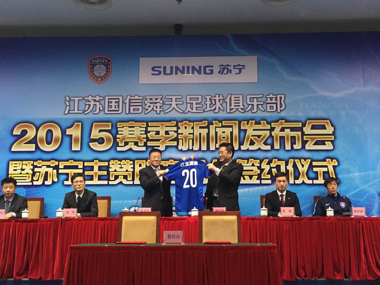 3月3日,從江蘇國信舜天足球俱樂部2015賽季新聞發(fā)布會(huì)傳出重磅消息:蘇寧正式簽約成為江蘇國信舜天足球俱樂部2015年的主贊助商,旗下快速發(fā)展的電子商務(wù)平臺蘇寧易購拿下了江蘇國信舜天球衣胸前廣告,雙方將在基礎(chǔ)贊助資金投入、商業(yè)運(yùn)營、球隊(duì)、粉絲文化建設(shè)、青訓(xùn)梯隊(duì)培養(yǎng)等領(lǐng)域開展全面合作。這是繼去年6月成為足球豪門巴塞羅那俱樂部中國區(qū)官方合作伙伴之后,蘇寧再度發(fā)力足球產(chǎn)業(yè)。