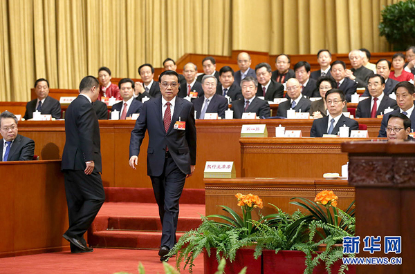3月5日,第十二屆全國人民代表大會第三次會議在北京人民大會堂開幕。國務院總理李克強作政府工作報告。這是李克強走向講臺。 新華社記者 黃敬文 攝