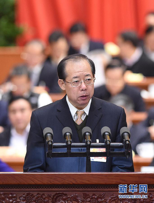 3月10日,全國政協十二屆三次會議在北京人民大會堂舉行第三次全體會議。這是卞晉平代表9位委員作《保護傳統村落留住歷史記憶》的聯合發言。新華社記者 王曄 攝