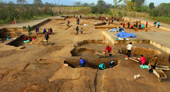 黃河是中華民族的母親河,她的兩岸孕育了璀璨的古代文明。遠古時期的豫西、晉南和整個陜西大地上,土地肥沃,溝壑縱橫,氣候濕潤,河流成網,湖泊、沼澤、水洼星羅棋布,棲息和繁衍著大量的古代人類,他們在黃帝和炎帝的帶領下,在茹毛飲血中創造著燦爛的仰韶文化。如果把豫、陜、晉三角地帶比作是仰韶文化時期人類文明的一頂皇冠的話,那么北陽平遺址群就是皇冠頂端那顆最璀璨、最耀眼的明珠,而西坡遺址又恰好就居于這顆明珠的核心部位。西坡遺址占地60多萬平方米,在鑄鼎原眾多的遺址中鶴立雞群,氣度不凡。