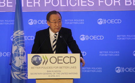 4月28日,聯(lián)合國秘書長潘基文在經(jīng)濟合作與發(fā)展組織位于巴黎的總部發(fā)表演講。潘基文表示,現(xiàn)有的國際投融資機制已難以滿足各國可持續(xù)發(fā)展需要,國際社會應(yīng)加強合作,爭取達成新的協(xié)議,以改善現(xiàn)有的國際投融資機制,促進可持續(xù)發(fā)展。