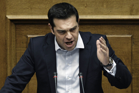 6月28日,希臘總理齊普拉斯在雅典向議會發(fā)表講話。 希臘議會28日凌晨通過一項議案,決定把國際債權(quán)人提出的解決希臘債務(wù)危機問題的協(xié)議草案交全民公決。全民公決投票將于7月5日舉行。