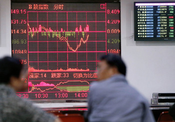 29日,股民在上海一家證券營業(yè)部內(nèi)關(guān)注股市行情。 新華社記者 丁汀/攝