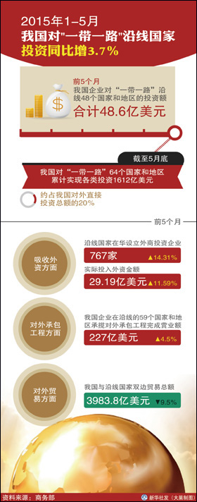 來自商務部的統計顯示,前五個月,我國與沿線國家雙邊貿易總額3983.8億美元,占同期我國進出口總額的25.8%;沿線國家在華實際投入外資金額29.19億美元,占全國吸收外資總額的5.42%;截至今年5月底,我國對“一帶一路”64個國家/地區累計實現各類投資1612億美元,約占我國對外直接投資總額的20%。此外,長江沿線省份一季度依然保持較高經濟增速,絕大部分地區超過全國水平。