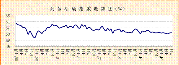 中國物流與采購聯合會、國家統計局服務業調查中心發布的2015年7月份中國非制造業商務活動指數連續兩個月環比上升,達到53.9%,環比上升0.1個百分點。市場活動的連續回升,反映非制造業運行的穩定性有所增強。從具體指數看,有利于經濟繼續平穩向好的積極因素也有所釋放。
