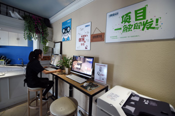 圖為一名青年創業者在蘭州的一家創業咖啡店內查詢資料?!∮浾?范培珅/攝 |