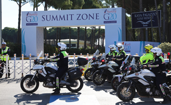 11月11日,在土耳其安塔利亞,警察在二十國集團領導人第十次會議主會場區域內執勤。 記者 鄒樂/攝 |