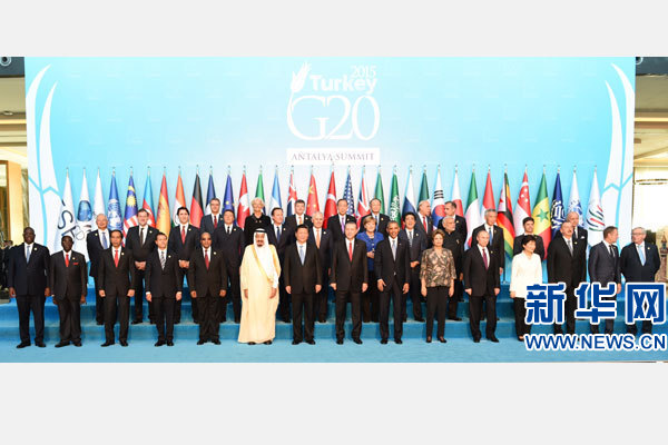 ??? 15日,二十國集團領導人第十次峰會在土耳其安塔利亞舉行。國家主席習近平出席并發表題為《創新增長路徑 共享發展成果》的重要講話,強調二十國集團要加強宏觀經濟政策溝通和協調,推動改革創新,構建開放型世界經濟,落實2030年可持續發展議程。