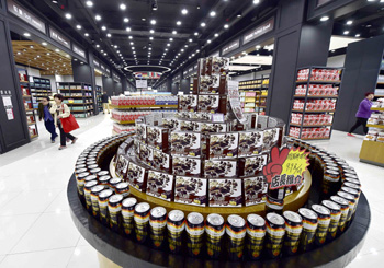 圖為市民在天津自貿區于家堡全球購商業街跨境商品直營中心內挑選跨境商品。 記者 岳月偉/攝? |