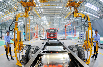 工人在中航工業(邢臺)卡車總裝車間內工作(5月11日攝)。 新華社記者 朱旭東/攝? |