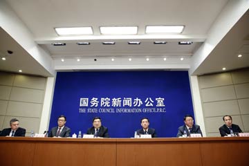 ?10月10日,國務(wù)院新聞辦公室舉行新聞發(fā)布會(huì),請發(fā)展改革委副主任連維良、財(cái)政部部長助理戴柏華、人民銀行副行長范一飛、國務(wù)院國有資產(chǎn)監(jiān)督管理委員會(huì)副主任孟建民、銀監(jiān)會(huì)副主席王兆星介紹積極穩(wěn)妥降低企業(yè)杠桿率有關(guān)政策情況,并答記者問。新華社記者 沈伯韓/攝 |