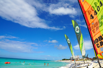 ??? 巴拉德羅的加勒比海沙灘上停放很多帆船 |