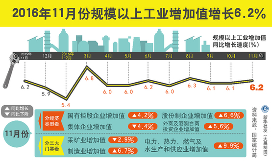 國家統計局新聞發言人毛盛勇表示,從工業內部來看,代表轉型升級方向的高技術產業11月增長10.6%,增速比上月加快0.1個百分點,裝備制造業增長10.5%,比上月加快0.4個百分點。裝備制造業和高技術產業已經成為11月規模以上工業增速加快的主要力量,這是說明工業內部轉型升級的態勢在增強。企業利潤方面,1-10月企業的主營業務收入增長率、企業主營業務利潤率均有所改善,企業利潤的好轉,一方面受益于價格因素,另一方面也說明企業主動在練內功,企業產品結構在不斷優化。