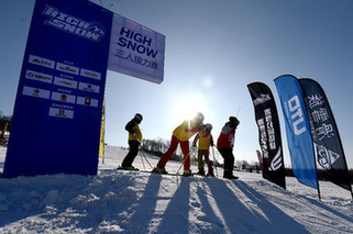 ????? 近日,在沈陽怪坡滑雪場,眾多“滑雪族”參加了高山滑雪、三人接力等雪上活動,體驗滑雪樂趣。圖為參加三人接力賽的選手準備出發。 記者 李鋼 攝? |