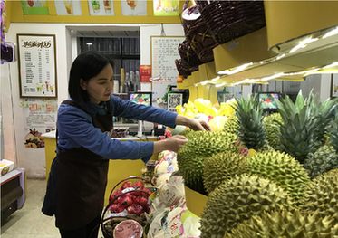 近日,梁培培在自營水果店內(nèi)為顧客挑選水果。從淮北礦業(yè)集團離開至今,不到一年時間,梁培培的生意從當初的一輛雪糕車變成了三個店面,月營業(yè)額20萬元。