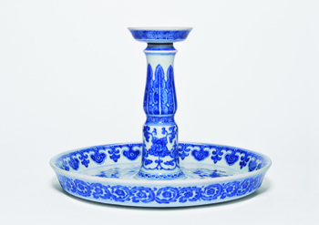 ??? 清乾隆早期 唐英自用青花纏枝花卉紋燭臺 |