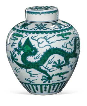 清乾隆 綠彩云龍紋蓋罐(一對) |