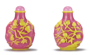 十八世紀 粉紅料套黃福壽紋鼻煙壺 |