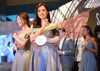 ??? 9月5日,第三十六屆香港鐘表展在香港會議展覽中心開幕,共吸引820家來自24個國家及地區的展商參與。圖為模特在展示新設計的腕表。記者 呂小煒 攝 |