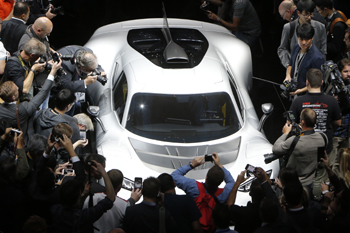 ??? 9月11日,在德國法蘭克福,來賓在首發式上參觀奔馳頂級超跑AMG Project One。法蘭克福國際車展于9月14日正式對公眾開放。新華社/美聯 |